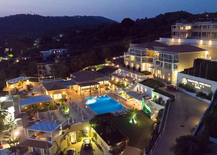 Obsahující Wi-Fi ve veřejných prostorách, Skiathos Premier Troulos nabízí ubytování 3 km od Velká banánová pláž. Pláž Koukounaries je 2 km daleko od Skiathos Premier.